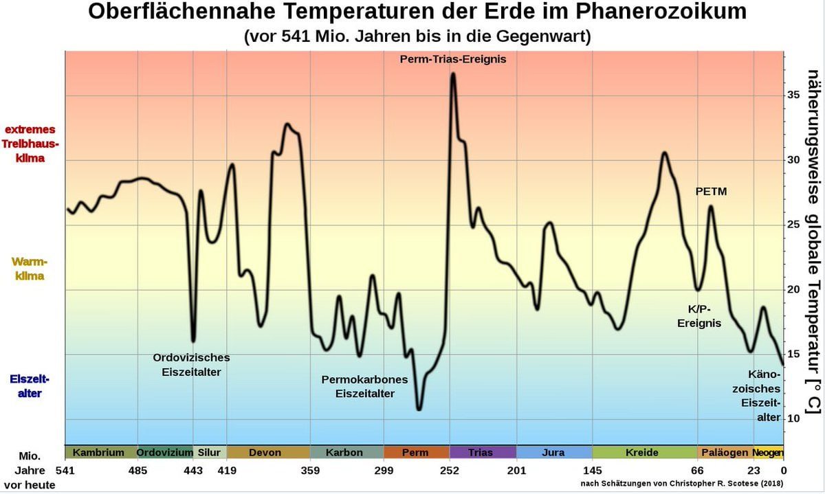 Heute befinden wir uns nahezu in einer Eiszeit, wenn man den Vergleich mit den Daten der letzten 500 Millionen Jahre bemüht.